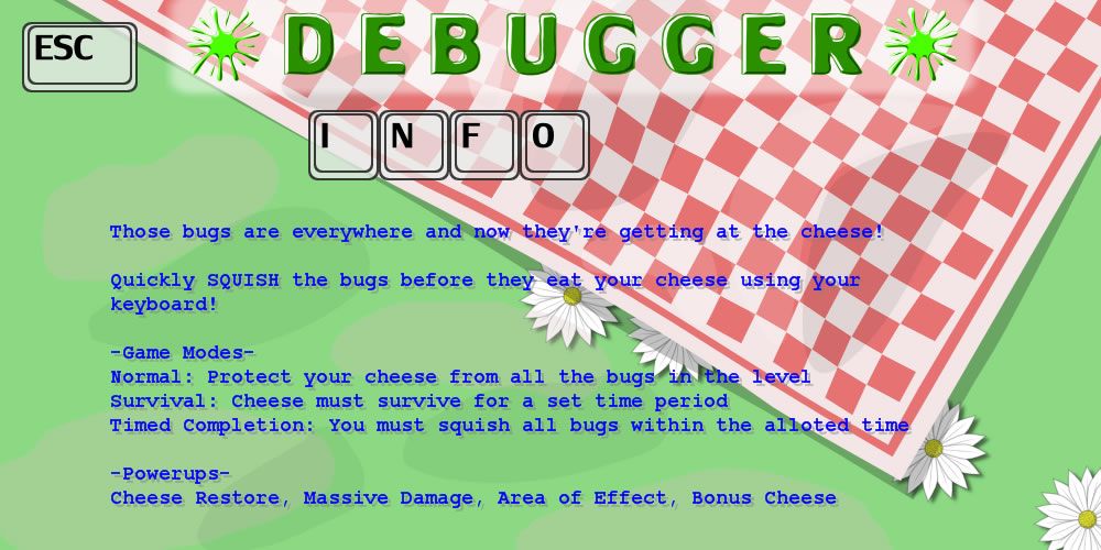 Though developed in a tight timeframe for the 2008 Toronto Game Jam, Debugger’s visuals are charming and functional. The brightly colored cheese icons contrast nicely with the dark, creeping bugs, ensuring that your primary objective always stands out. Each backdrop—ranging from kitchen counters to rustic picnic blankets—adds personality without distracting from the core action.