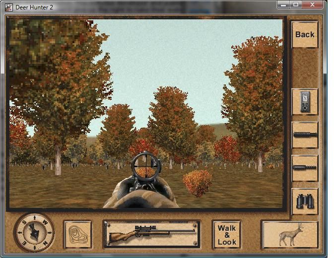 Graphically, Deer Hunter II captures the rugged beauty of North American wilderness with lush forests, rolling hills, and sprawling meadows. The game engine renders foliage and terrain with surprising detail for its era, giving each environment an authentic, immersive feel. Animals move naturally through the underbrush, often disappearing out of sight before you even spot them, which heightens the realism of the chase.
