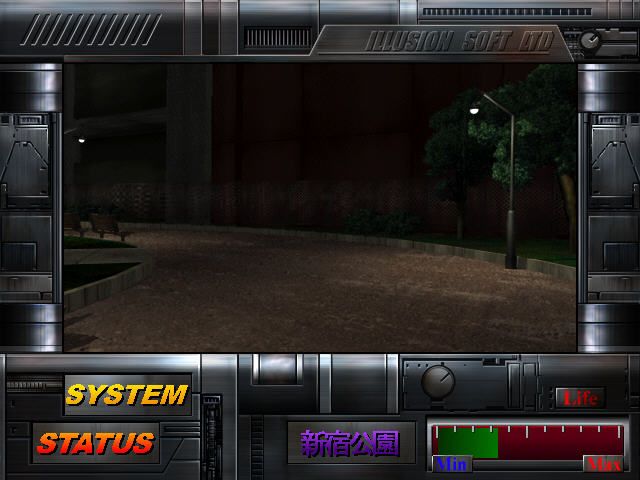 Des Blood delivers a hybrid experience that shifts seamlessly between full motion video (FMV) exploration and stationary shooter segments. As a first-person adventure, you navigate Tokyo’s crime-ridden streets by clicking through pre-rendered environments, much like classic graphical text adventures. There’s no true freedom of movement—each node in the city is a static tableau, and your interaction is driven by menu options and hotspot clicks.