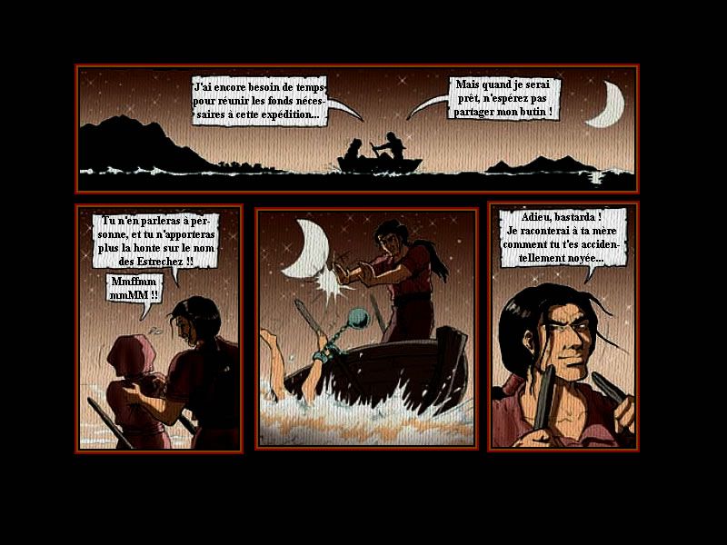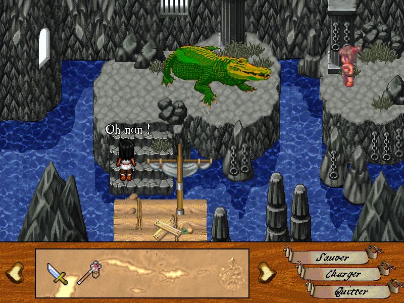 Perhaps the most striking graphical feature is the inclusion of full-color panels from the original La Carte d’Estrechez comic during narrative interludes. These high-resolution illustrations contrast sharply with the engine’s lower-res sprites, creating a delightful interplay between gameplay and story. These breaks in the 2D engine’s monotony serve as visual highlights and remind players of the rich source material underpinning the adventure.