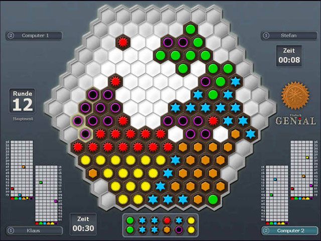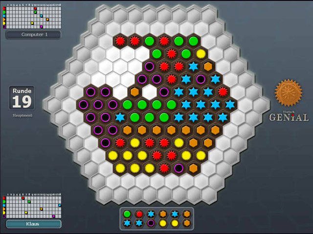 Visually, Einfach Genial adopts a minimalist aesthetic that emphasizes clarity and functional design. The hexagonal board is rendered with crisp lines and vibrant colors, ensuring each gem symbol stands out distinctly against the neutral background. This clarity is crucial given the game’s heavy emphasis on pattern recognition and spatial planning—nothing feels visually cluttered or distracting.