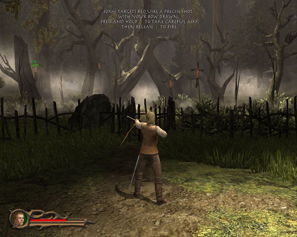 Visually, Eragon captures the sweeping vistas of Alagaësia well for its generation. Character models are reasonably detailed, with Eragon’s armor and Saphira’s scales showing subtle textures under the lighting effects. Spell animations glow brightly against the often-muted backgrounds, making combat feel dynamic even when the camera angle obscures part of the action.