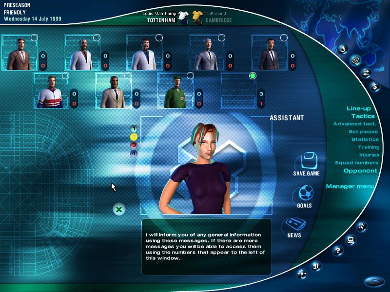 Euro League Football’s visual presentation balances functionality with nostalgic charm. Menus and roster screens are laid out clearly, with crisp typography and club badges rendered faithfully from the 1999–2000 season. It’s easy to locate player stats, fixture lists and transfer market details thanks to an intuitive interface that never feels cluttered.