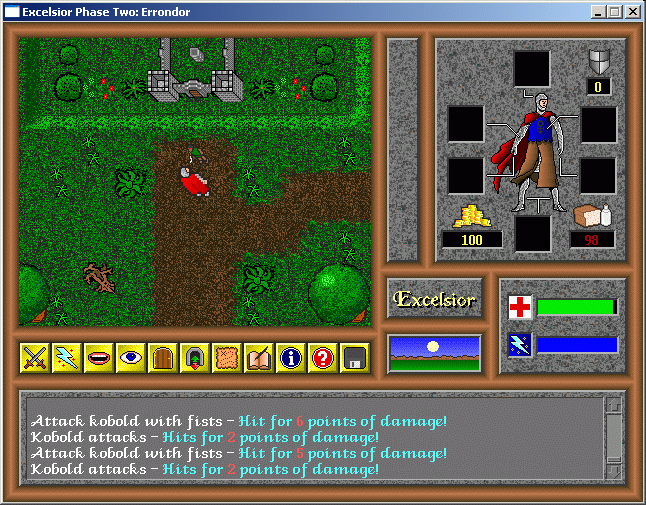 Visually, Excelsior Phase Two harks back to the golden era of 2D tile-based RPGs while incorporating modern touches. The hand-drawn sprites retain a nostalgic pixel charm, and environmental detail—from ivy-clad walls in ancient keeps to shimmering lake surfaces—creates an inviting world ripe for exploration. Animations are modest but purposeful: torches flicker, water ripples, and even the rustle of trees responds to your character’s approach.