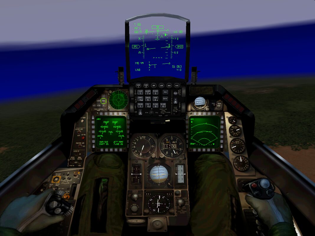 The cockpit is modeled in reasonable detail, with legible instruments and functioning switches that respond to mouse clicks or joystick toggles. While some textures can appear flat up close, the heads-up display (HUD) remains clear and uncluttered, providing essential flight and weapons data without overwhelming the view. Exterior aircraft models capture the F-16’s iconic silhouette, though ground vehicle art can occasionally feel simplistic.