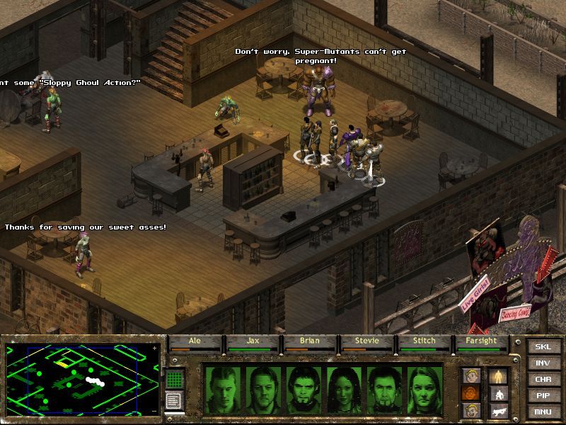 For its era, Fallout Tactics delivered a marked graphical polish over the original Fallout titles. The isometric perspective employs detailed 2D sprites combined with pre-rendered 3D environments, lending a sense of depth to crumbling buildings, irradiated wastelands, and underground vaults. Subtle animations—like flickering light fixtures or roving mutant patrols—add atmospheric flair to every battlefield.