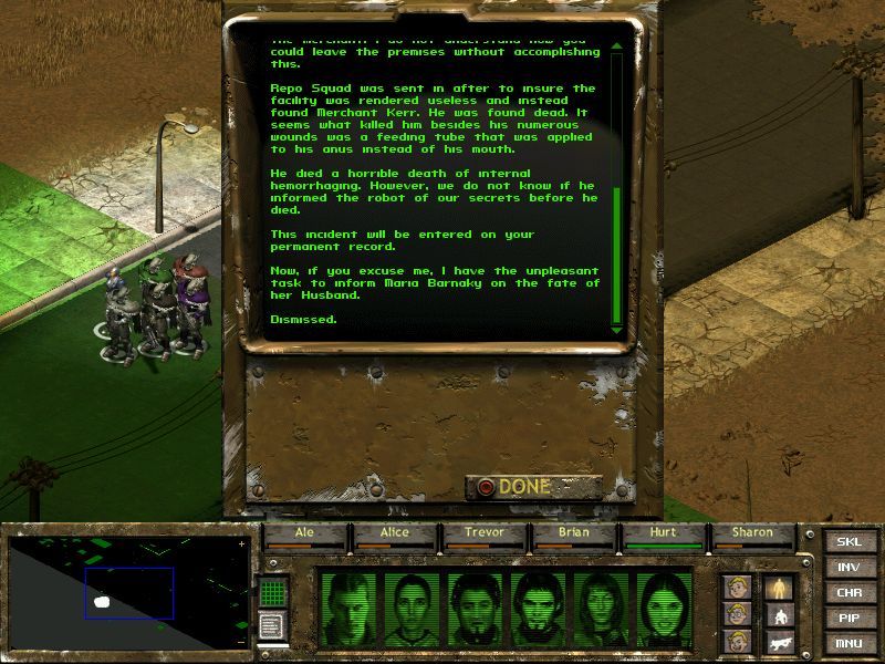 Fallout Tactics: Brotherhood of Steel shifts the focus from open-world exploration to tactical squad-based combat. As a newly minted initiate of the Brotherhood, you command a four-person squad through a series of increasingly difficult missions. Each scenario tasks you with objectives ranging from clearing Raider strongholds to escorting caravans across irradiated wastelands, and culminates in uncovering a growing menace in the west.