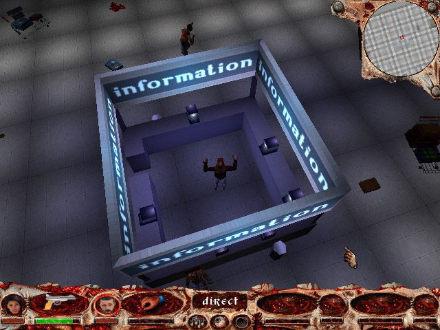 Visually, Flesh Feast leans into its horror-comedy roots. The island resort setting transforms from sun-drenched beaches to blood-smeared hallways with seamless transitions, and each area—from the morgue’s flickering fluorescent lights to the neon glow of the airport terminal—carries its own mood. Textures aren’t cutting-edge by modern standards, but they’re detailed enough to convey grime, rust, and the gore you’d expect in a zombie title.