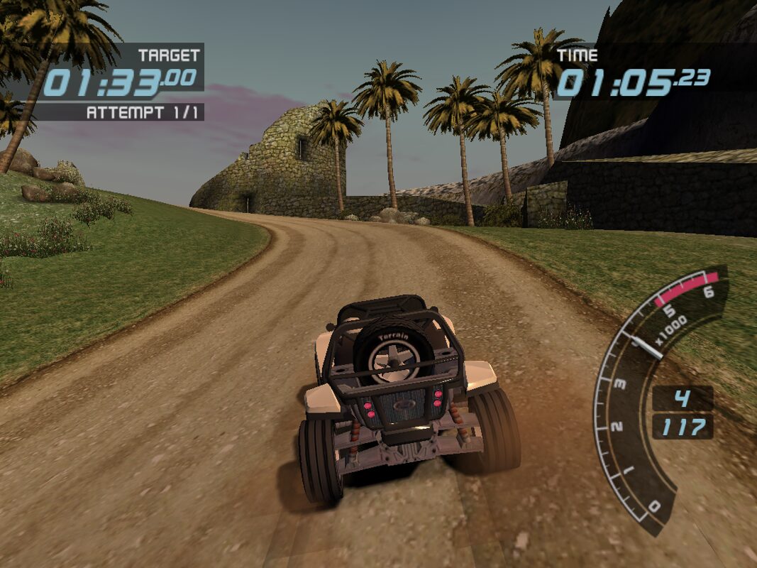 Performance remains stable across all modes, with frame rates that rarely dip even during intense off-road scrambles. Lighting effects, such as day-night transitions and sun flares, contribute to an atmospheric race setting. While the game may not rival contemporary titles in sheer polygon counts, its art direction stays true to the Ford brand, striking a pleasing balance between realism and arcade-style fun.