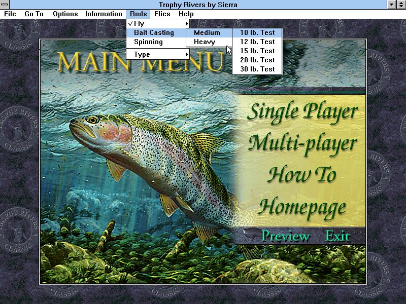 Front Page Sports: Trophy Rivers delivers an immersive fishing simulation that caters to a wide range of players, from casual hobbyists to competitive anglers. In single-player mode, you can embark on a leisurely Fishing Trip, test your skills in a Tournament against the AI, or pursue a multi-tournament pro Career that tracks your progress from rookie to champion. Each mode feels distinct: the Trip lets you fish without pressure, the Tournament adds a structured challenge against timed goals, and Career mode introduces long-term strategy as you chase pro rankings and sponsorships.
