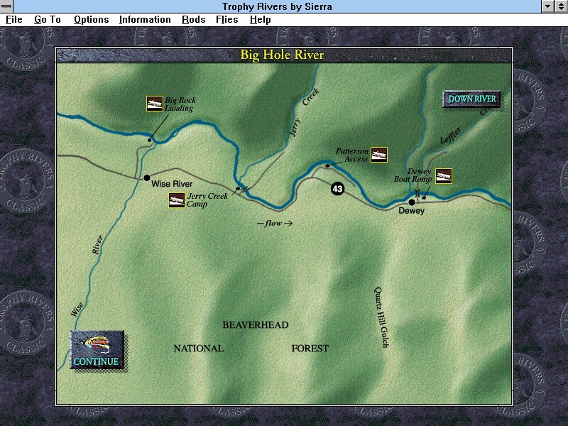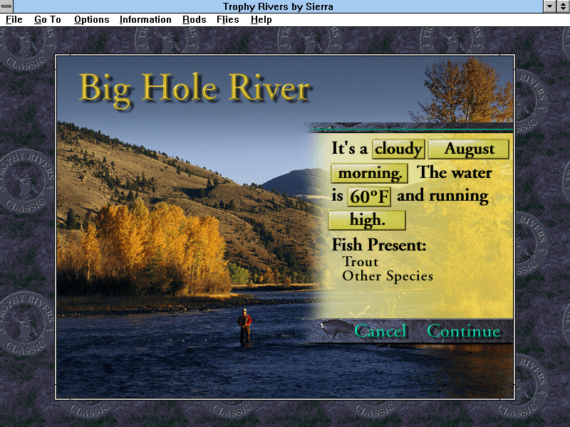 For a mid-’90s release, Trophy Rivers’ visuals are surprisingly detailed, capturing the varied palettes of North America’s most celebrated fishing hotspots. Rivers wind through lush forests, rocky canyons, and serene farmland. Textures on water surfaces give a convincing impression of current flow, with ripples and reflections that respond to wind and boat wakes. Watching a bass leap clear of the water in pursuit of a lure remains a highlight of the presentation.
