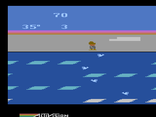 Frostbite embraces a charming retro aesthetic, with pixel-art visuals that evoke classic arcade platformers. The crisp white and blue color palette effectively conveys the harsh Arctic environment, while splashes of color from the wildlife and the Eskimo’s bright parka help important elements stand out. Each ice block shimmers subtly, giving the impression of cold, treacherous footing.
