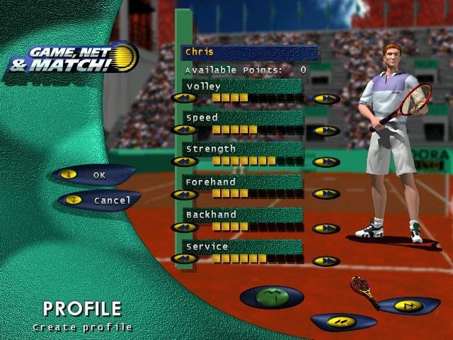 Game, Net & Match! builds on the solid foundation of the Great Courts series by offering both a faithful tennis simulation and an engaging career progression system. You start by creating your own player, assigning initial stats, and then refining those skills through targeted training sessions with a ball machine. This RPG-like approach means that every backhand, serve or volley you execute in practice or match play has a direct impact on your character’s development.