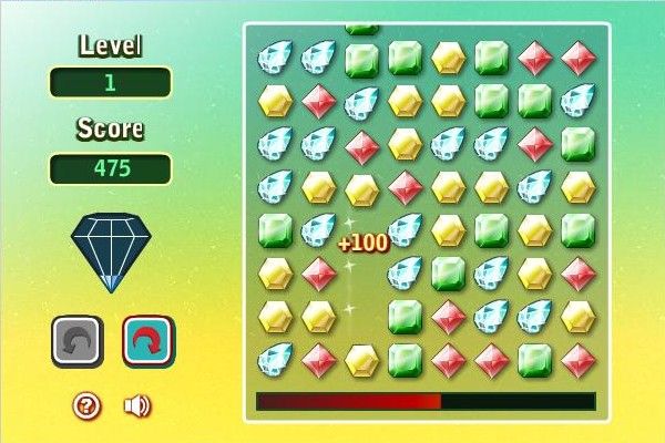 Visually, Gems Twist adopts a bright, jewel-toned palette that’s both inviting and functional. Each gem type has a distinct color and shape—emerald triangles, sapphire circles, ruby squares—that stand out clearly against the dark, neutral backdrop. This high-contrast design ensures you can spot potential matches at a glance, even under the pressure of a ticking timer. The simplicity of the UI keeps your focus on the grid, while subtle gem-shine animations add just enough flair.