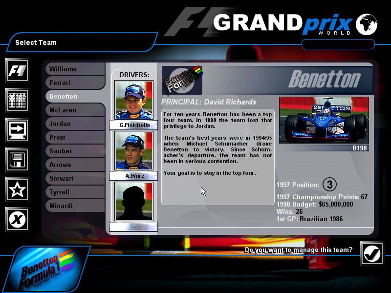 Graphically, Grand Prix World marries functionality with a dash of period charm. The interface is clean and organized, with crisp 2D menus that display personnel stats, financial summaries and car spec sheets without distraction. While it may feel dated compared to modern 3D extravaganzas, the clarity of information presentation remains second to none.
