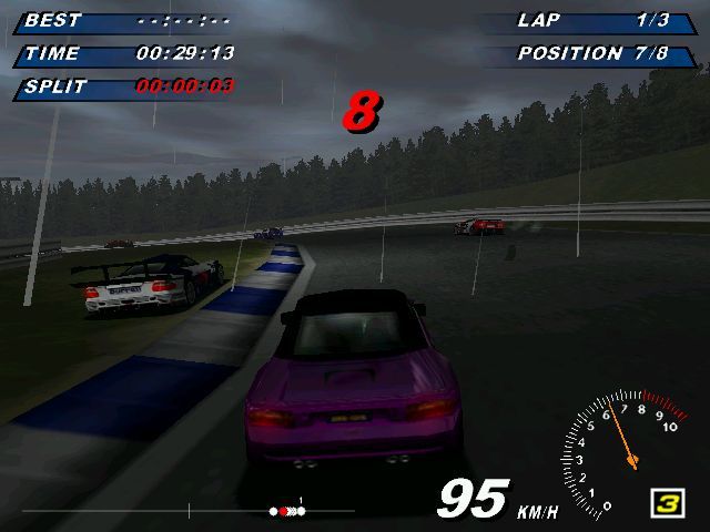 While texture resolutions aren’t cutting-edge by today’s standards, the art direction remains consistent and clear. Car models may carry placeholder names, but body panels, wheel designs, and cockpit details are rendered with care. Subtle effects—like spray kicking up behind your tires in wet weather—lend an extra sense of speed and immersion, ensuring you feel connected to every wheelspin and slide.