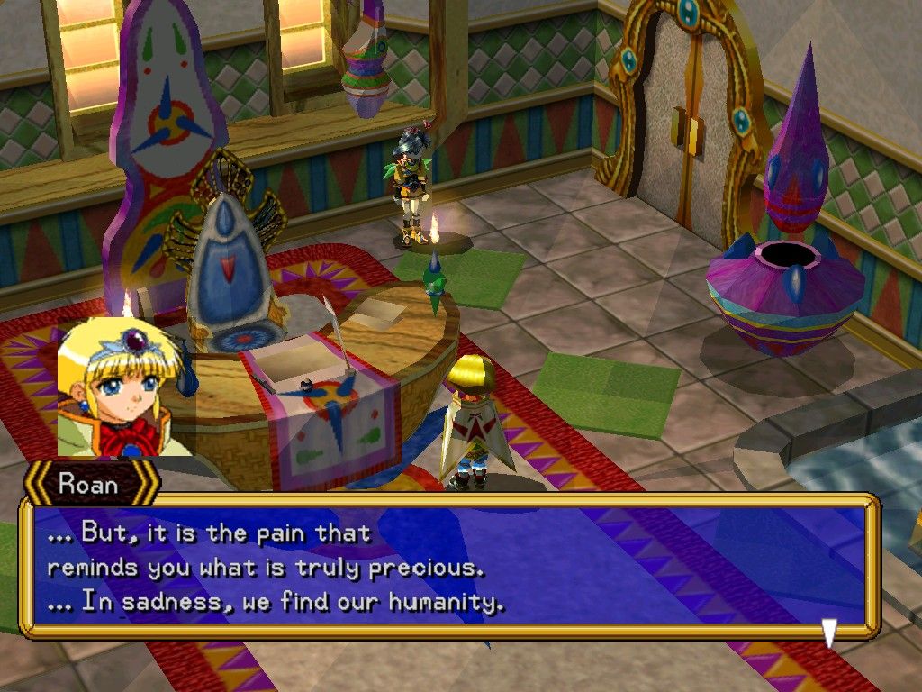 The narrative of Grandia II unfolds against the backdrop of an ancient conflict between the benevolent god Granas and the demon Valmar. Though Valmar was sealed away long ago, whispers of the impending “Day of Darkness” hint at his eventual return, casting a shadow over the world’s newfound peace. This grand setting gives weight to every town you visit and every monster you defeat.