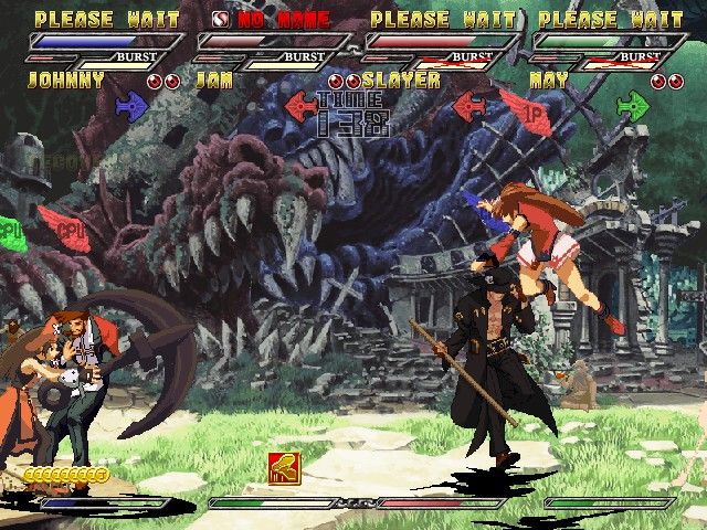 Visually, Guilty Gear Isuka upholds the series’ reputation for striking, hand-drawn sprite work. Character animations are fluid and expressive, with each move framed to highlight the weight and personality of the fighters. Special attacks erupt in vibrant colors and detailed effects, ensuring that combos and supers not only feel powerful but also look spectacular.