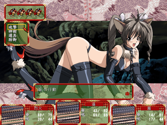 Guren’s core gameplay revolves around first-person, turn-based battles against a variety of “ghost” creatures that have overrun ancient Japanese villages. Encounters are triggered randomly as you explore each area, keeping exploration tense and unpredictable. Combat itself is straightforward but strategic: you select attacks, items or skills in each turn, balancing offense and defense while monitoring your party’s health and status.