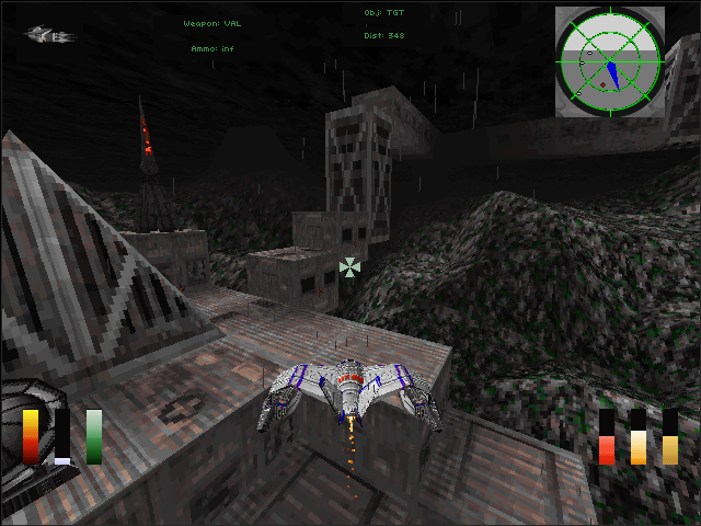 Hellbender’s graphics engine marks a significant leap from its predecessor, Fury³, delivering richly detailed environments that range from sunlit cloudscapes to shadowy underground complexes. The draw distance is impressive for its era, letting you spot distant enemy formations or looming structures well before you engage. Terrain textures are crisp, and environmental details—such as billowing smoke plumes and dynamic lighting—help ground the sci-fi setting in a tangible reality.