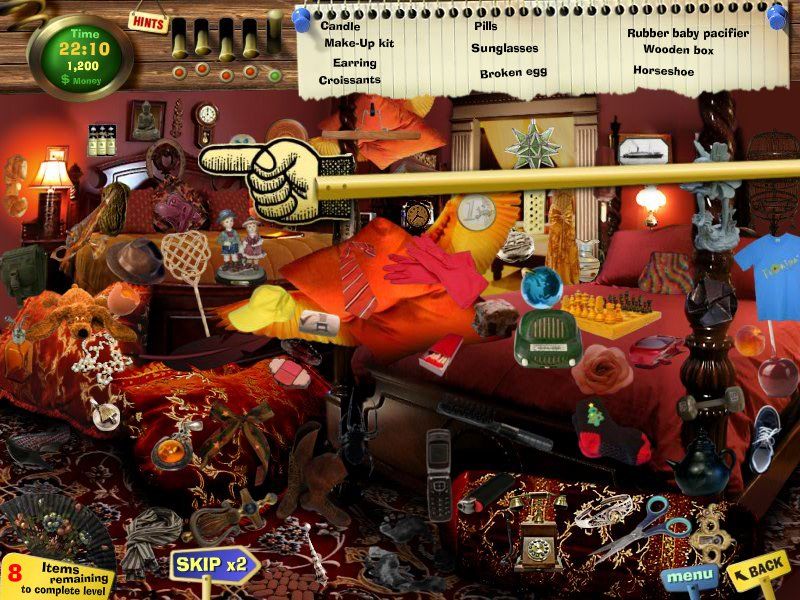 Hints are thoughtfully integrated to prevent frustration without removing challenge. You start each stage with five hint tokens. When you’re truly stuck, clicking the hint button causes a wooden arm to spring out and point to one of the remaining objects. However, careless clicks carry a penalty: each wrong selection deducts 30 seconds from your timer, encouraging careful observation and strategic use of hints. This balance of assistance and consequence makes each hunt feel rewarding, even for newcomers to hidden-object adventures.