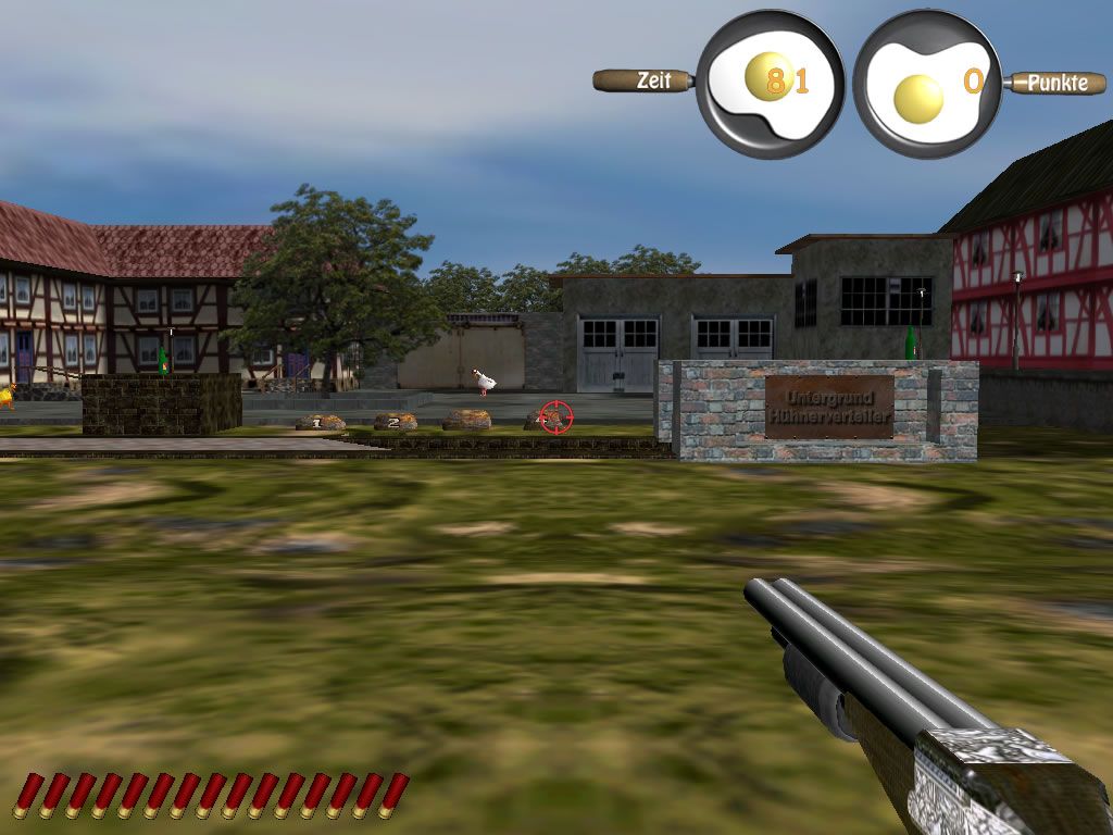 Hühner Frikassee delivers a classic arcade shooting experience, building on the beloved Moorhuhn formula with fresh twists. In the main hunting mode, you remain stationary but can pan your view a full 360°, targeting chickens that strut, waddle, and swoop across the screen. Farther targets reward higher points, creating a risk-versus-reward dynamic where precision and timing are crucial to maximizing your score.