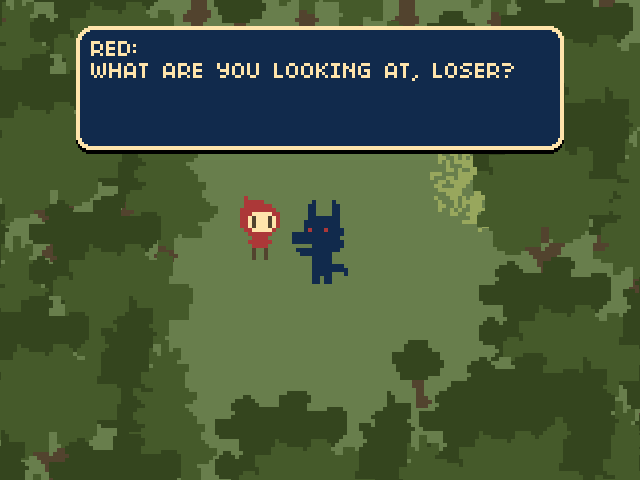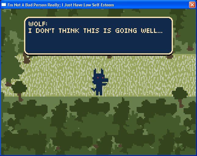 I’m Not a Bad Person Really; I Just Have Low Self-Esteem delivers an experience that’s surprisingly polished for a one-day game jam entry. You assume the role of the wolf from Little Red Riding Hood, navigating a linear path through a modest forest and a small cottage. Controls are straightforward—arrow keys or WASD to move, with simple interaction prompts that let you converse with key characters or examine noteworthy objects. While this limits the scope of player choice, it also keeps the focus firmly on the narrative and atmosphere.
