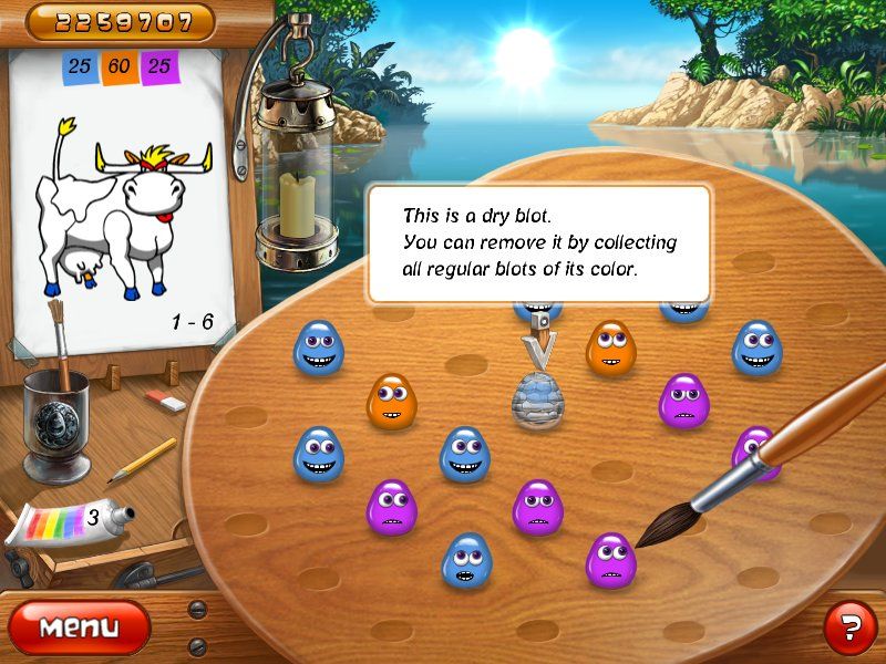 In Living Colors! places you squarely in front of a vibrant palette, tasking you with linking paint blots of the same hue using a brush-shaped cursor. Each successful match fills in portions of a monochrome line drawing on the left side of the screen, giving instant visual feedback and a tangible sense of progress. The core loop—match, paint, and progress—remains satisfyingly simple, yet nuanced enough to keep you strategizing as levels grow more complex.