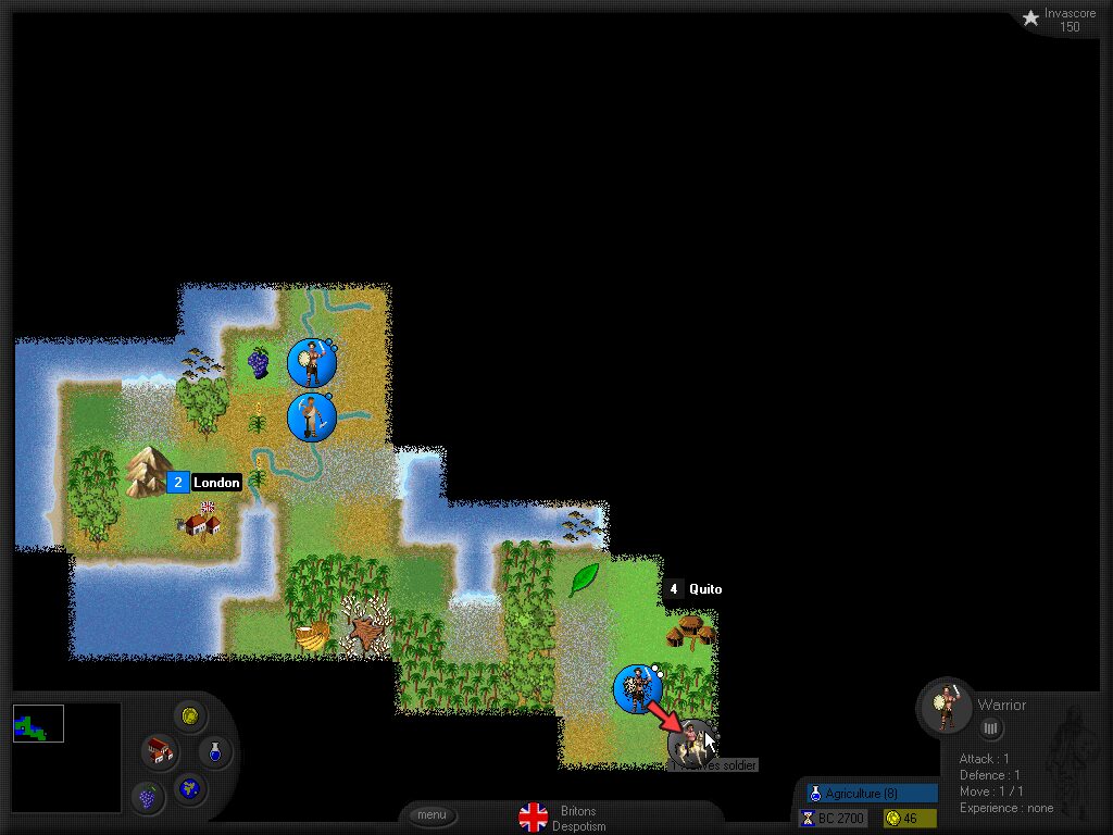 Visually, Invasion adopts a classic isometric viewpoint with crisp, colorful tiles representing varied terrain—from lush plains and dense forests to snow-capped mountains and arid deserts. Each biome is distinct, helping you quickly assess resource availability and strategic chokepoints. Cities and units are drawn with clear silhouettes, making it easy to distinguish between workers, settlers, cavalry and siege engines at a glance.