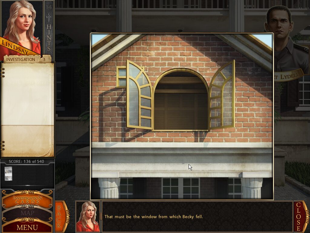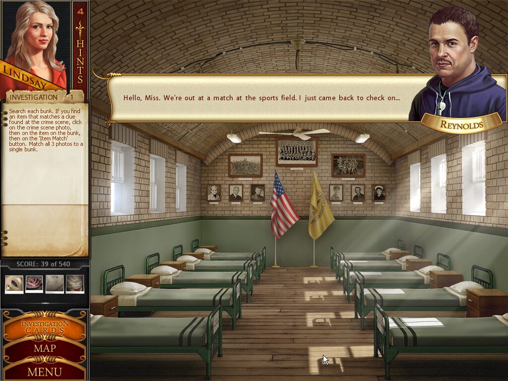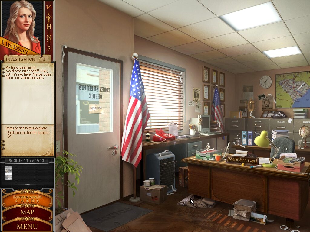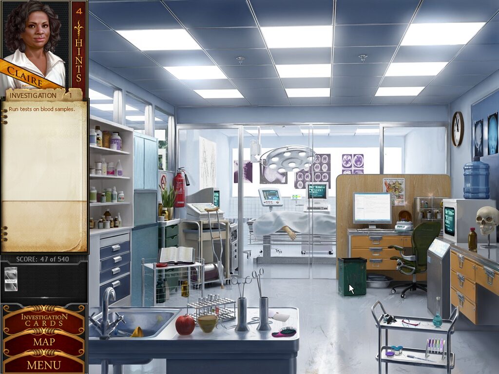 Women’s Murder Club: A Darker Shade Of Grey blends classic hidden-object exploration with light adventure mechanics, offering a structured, chapter-based experience. Players toggle between crime scenes, forensic labs, and various Southern locales, each rendered as a clickable panorama littered with “shimmering spots” that uncover clues. The left-side tab organizes your tools: a portrait of the active detective, a hint button with limited uses per chapter, a notepad tracking objectives, and an inventory stocked with forensic instruments. This streamlined interface ensures focus remains on investigation rather than micromanagement.