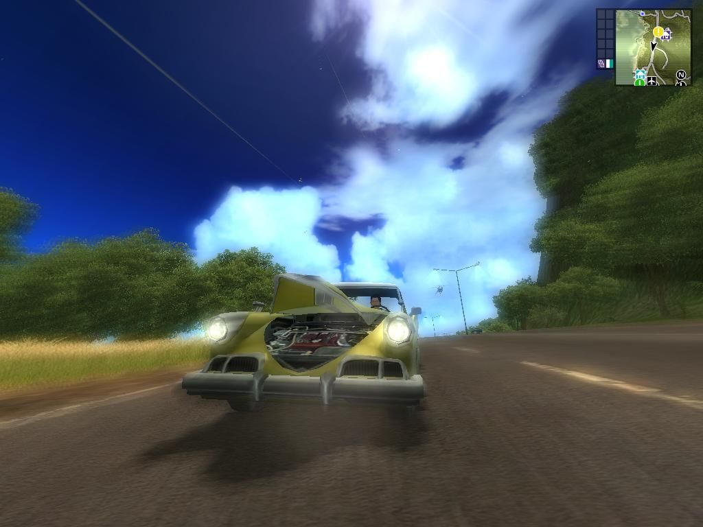 Visually, Just Cause captures the tropical beauty and political decay of San Esperito. Lush greenery sweeps across mountain valleys, crystal-clear waters lap against sandy beaches, and dusty roadways wind through small towns and government compounds. The draw distance is impressive, allowing you to spot enemy bases on distant hilltops—and plan your next stunt accordingly.