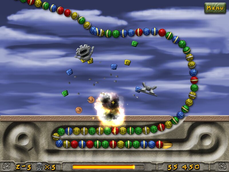 The variety of power-ups available adds strategic depth and spectacle. Lightning bolts clear straight lines, meteorite showers randomly shatter clusters, and the color-extinct power wipes out entire swaths of a chosen hue. Creative bonuses like the back arrow reverse the chain’s direction, while the digest power unleashes your entire stockpile in one devastating wave. These abilities turn each level into a puzzle of timing and resource management.