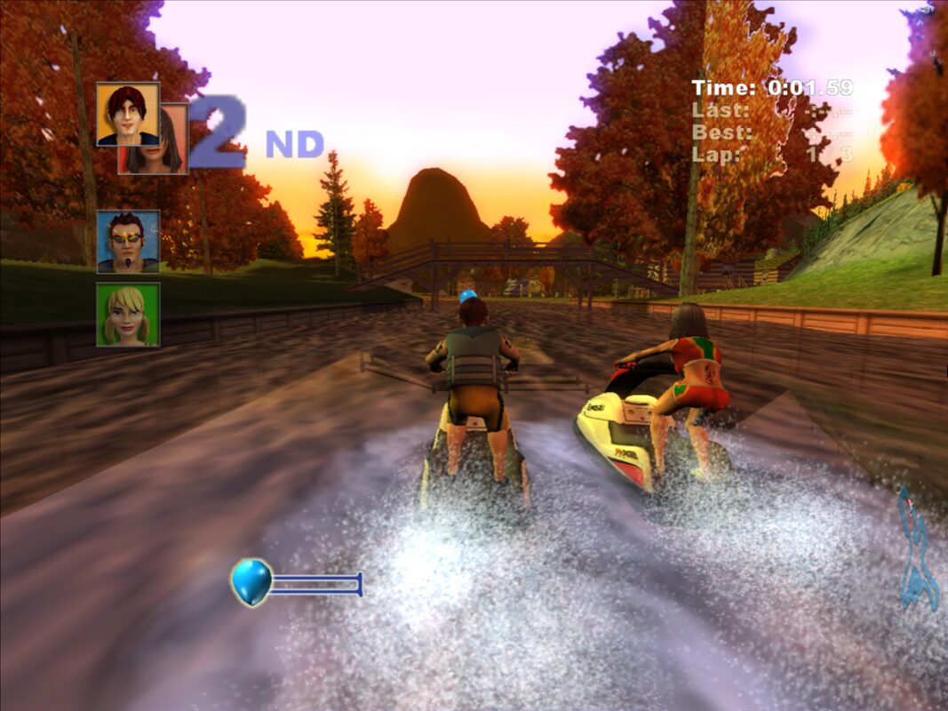 Character models and Jet Ski designs bear the official Kawasaki license, lending authenticity to the machines you ride. Textures on the watercraft are crisp, with metallic finishes and sponsor decals that pop against the natural backgrounds. While crowds and environmental details may lack the density of high-budget console racers, the overall visual fidelity strikes a strong balance between aesthetic charm and technical performance, making it a pleasure to race through each course.
