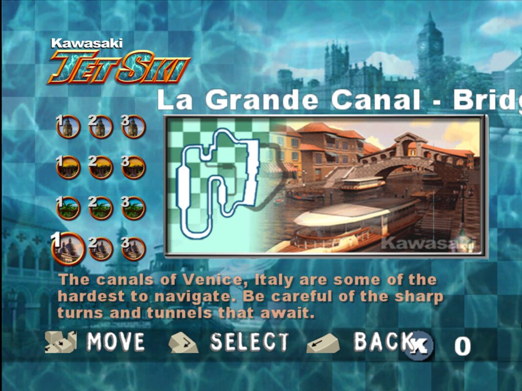 The primary “story” unfolds through your progression across different waterways, as each location is introduced by brief cutscenes or title cards that highlight the regional flavor. For instance, unlocking the Venice canals prompts a short cinematic of gondolas drifting by, setting the stage for nighttime racing under lantern light. These vignettes don’t delve into complex narratives but serve as charming waypoints that celebrate the licensed Kawasaki brand and the distinctiveness of each circuit.
