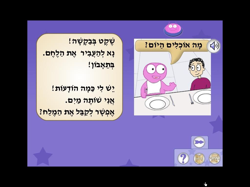 Character design is simple but expressive. Kef-Li’s round, pink form and wide smile make it instantly endearing, and its subtle animations—like bobbing excitedly when you click the right object—add personality without distracting from your learning. The UI overlays, such as click indicators and quiz menus, are intuitive, using easily recognizable icons and legible Hebrew lettering paired with transliteration when needed.