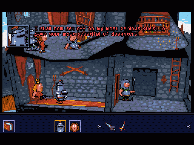 Knightsquire wastes no time setting up its tale: the King’s daughter has been kidnapped by a fearsome ogre, and Sir Gallant (the Knight) must ride to her rescue. To add a comedic twist, he brings along his devoted Squire, relegating him to all the “dirty work” of puzzle-solving. This dynamic sets up a lighthearted narrative that doesn’t take itself too seriously but still provides motivation for your quest.