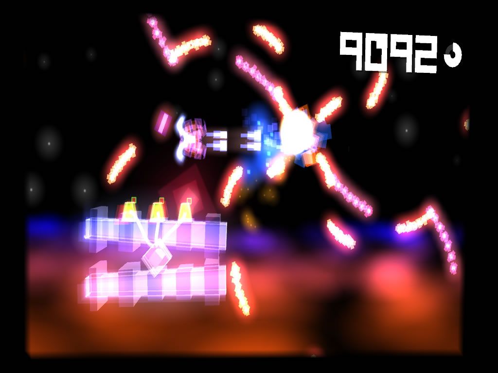 Your ship can explode indefinitely, but each death drains the Anger Meter and enforces a brief respawn delay. This mechanic encourages cautious play without punishing mistakes too harshly. Movement is freeform across the screen, yet sudden environmental distortions force you to adapt on the fly—switching between weaving through narrow corridors and dodging volleys in a wide-open arena.