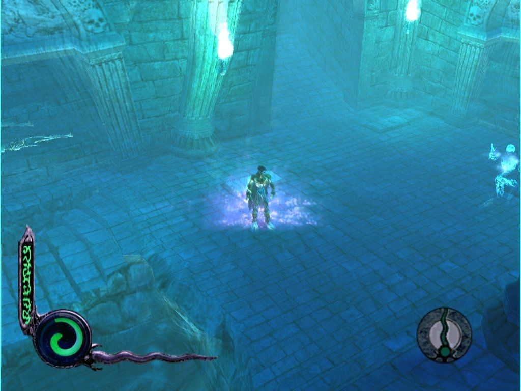 On a visual level, Legacy of Kain: Defiance stands out for its richly detailed environments and moody atmosphere. Nosgoth’s gothic architecture—ruined temples, mist‐shrouded forests, and foreboding Serafan fortresses—are brought to life with intricate textures and dynamic lighting. The contrast between the material and spectral realms is particularly striking: the spectral world appears as a ghostly, luminescent mirror of reality, with ethereal hues that underscore Raziel’s otherworldly perspective.