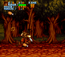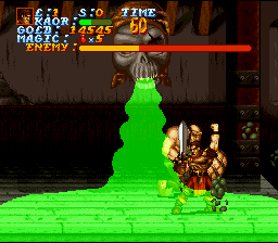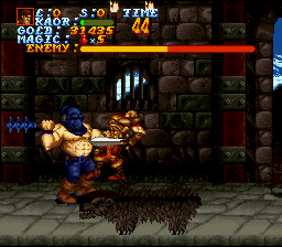 Magic in Legend is divided into two categories: screen-clearing spells and a special ranged attack. Spells consume magic bags you discover hidden in barrels or dropped by defeated foes, unleashing devastating elemental effects that damage every enemy on screen. Meanwhile, your special attack taps into an energy gauge that builds as you land hits, sending a powerful projectile across the battlefield at the cost of precious stamina.