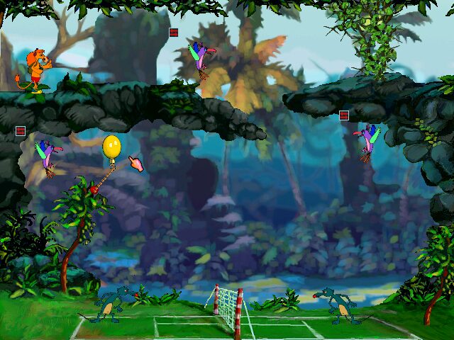 Leo the Lion’s Puzzles centers around a delightfully inventive contraption-building system reminiscent of the classic Incredible Machine titles. Each level grants you a handful of themed elements—bouncy snakes, hammerhead fishes, balloons, ropes and more—and challenges you to arrange them so that a key reaches an imprisoned animal or nails get hammered home. The core mechanic of placing pieces and then hitting “Start” to watch the physics simulation unfold is immediately engaging, turning trial-and-error experimentation into a satisfying learning process.