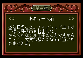 The Sega Genesis edition of Lord Monarch stands out with its vibrant animé-inspired visuals. Character portraits of Prince Alfred and rival monarchs are richly detailed, lending personality to otherwise faceless commanders. Battle animations, though simple by modern standards, convey a surprising amount of energy—infantry clash with swords drawn and arrows arc smoothly across the screen.