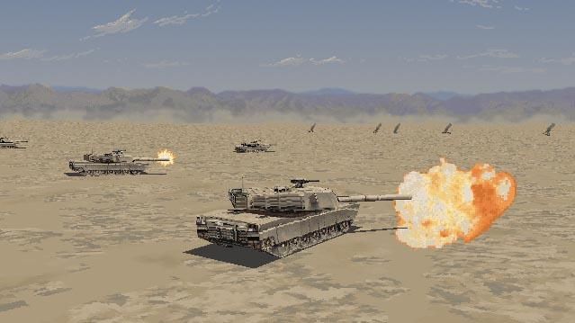 The tank models themselves are well-crafted, with polygonal hulls and turrets that faithfully replicate the Abrams silhouette. Inside the cockpit views, instrument readouts, gauges, and periscope visuals may appear dated by modern standards, but they still convey a convincing sense of weight and machinery. The thermal vision filters also stand out with their greenish glow and scan-line effect, enhancing immersion.