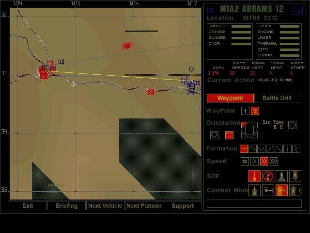 For its era, M1 Tank Platoon II delivers impressively detailed environments, from desert sands to rolling farmland. Terrain elevation is modeled realistically, affecting line of sight, projectile trajectories, and tank handling. Hills, ridges, and foliage all play a role in concealment and cover, making map awareness critical.