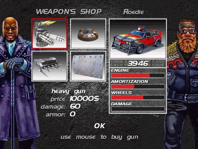 Mad Cars drops you into a world ravaged by World War III, where civilization’s remnants are held together by the promise of firepower and speed. The arms and parts dealer Marlok has capitalized on the chaos, organizing the Mad Cars tournaments as a spectacle and proving grounds for drivers desperate to turn scrap into riches. Though the game doesn’t feature lengthy cutscenes or voiced dialogue, each race’s opening screen and weapon‐upgrade vendor portraits hint at rivalries, alliances, and back-alley betrayals.