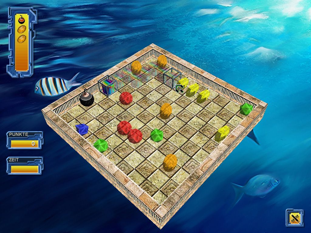 Adding strategic variety, Magische Kristalle features six different board layouts and three special board objects—a color pail that instantly changes a crystal’s hue, a bomb that clears surrounding pieces, and a joker that acts as a wildcard match. These special tools can be found or earned during play, giving you occasional lifelines when the board threatens to overflow. Learning when and where to use them is key to staying in control when the regular crystals start closing in.