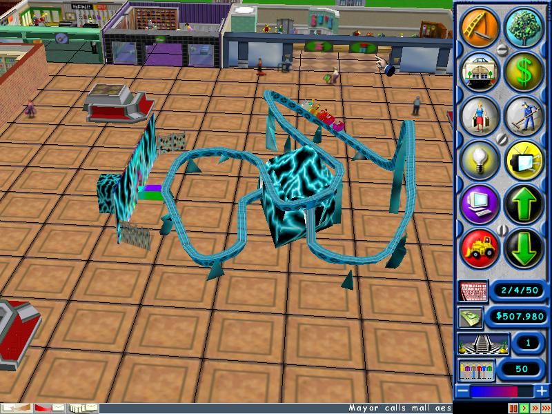 Beyond basic construction, Mall Tycoon shines in the depth of its management elements. You have access to dozens of decorative and functional items—rollercoasters for family fun zones, comfortable benches for leisurely shoppers, ATM machines for convenience, and escalators or elevators to comfortably ferry customers between floors. Every decision you make, from floor textures to drink machine placement, affects customer flow, dwell time, and overall profitability.