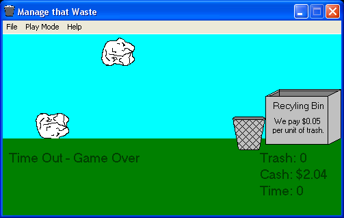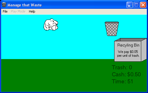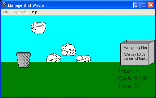 Manage That Waste introduces a simple yet surprisingly addictive core loop: you control a trash bin with the arrow keys and catch falling refuse before it hits the ground. Each piece you collect fills your bin toward a capacity of 10 items. Once full, the bin offloads its contents automatically—either selling them for cash in Money Game mode or simply disposing of them in Waste Cleaner Game mode. This mechanic creates a satisfying rhythm of catch, fill, dump, and repeat.