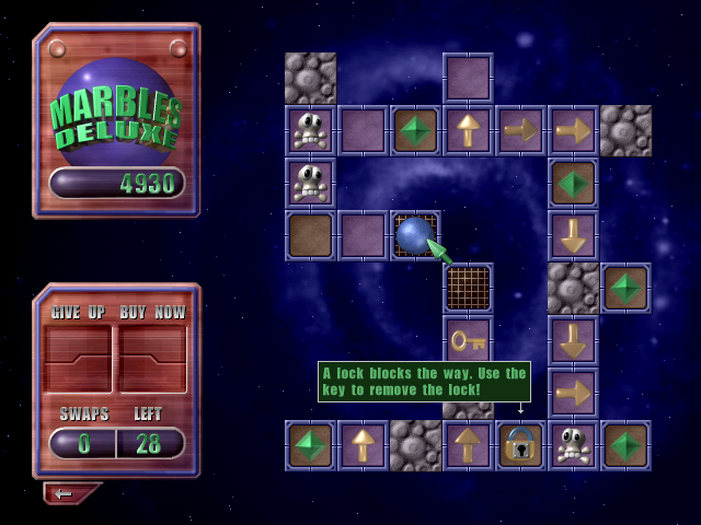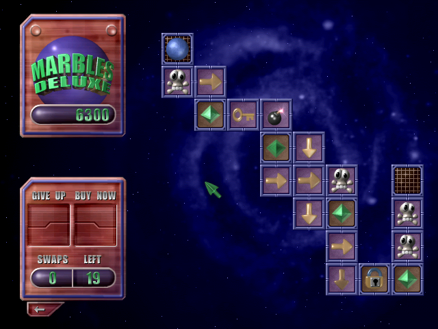 Marbles Deluxe builds on the straightforward yet addictive foundation of its Amiga predecessor, challenging players to shepherd a small blue marble across a grid of disappearing tiles. Each level hands you control of tile swapping via the mouse, and it’s in this mechanic where the core thrill lies: you must plan every curve, anticipate your next move, and ensure that you don’t trap yourself on an island of void. The 96 built-in stages offer steadily increasing complexity, introducing new tile types and fresh twists on the core puzzle loop.