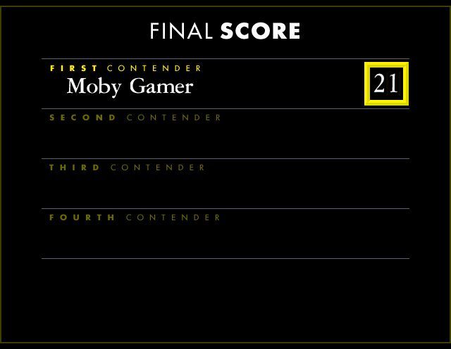 The host, Magnus Magnusson, is rendered as a tasteful silhouette and appears in pre-recorded video sequences to deliver question prompts and catchphrases. Though slightly pixelated by today’s standards, his “I’ve started so I’ll finish” line retains its charm and nostalgia. Animations are minimal—primarily limited to spotlight fades and smooth camera pans—but they never distract from the trivia action.