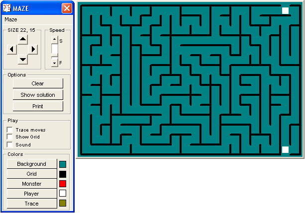 Maze delivers a deceptively simple yet thrilling gameplay loop that hinges on strategy, speed, and adaptability. From the moment you choose your maze dimensions—ranging from a compact 5×5 grid to an expansive 32×24 labyrinth—you’re thrust into a face-off against a relentless AI “monster” that begins at the opposite end of the field. Your objective is straightforward: navigate the twisted corridors and reach the top exit before the monster catches you or makes its way to your starting point.